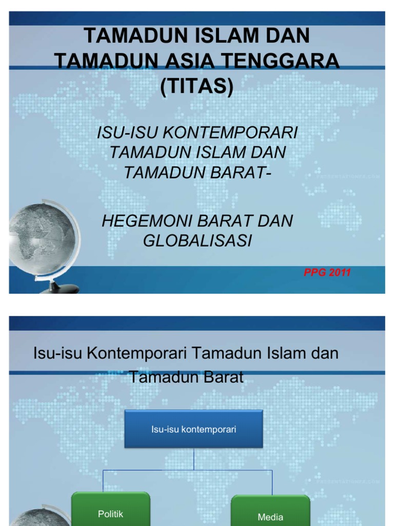 Proses globalisasi dewasa ini cenderung bersumber dari barat yang terus memegang supremasi dan hegemoni dalam berbagai segi kehidupan masyarakat dunia. Global artinya dunia sedangkan lization artinya adalah proses. Fenomena terkait hegemoni barat atas dunia islam misalnya dituduhnya iran dan irak atas kepemilikan senjata pemusnah massal atau nuklir. Menelusuri langkah indonesia menuju masyarakat ekonomi. Nurul umairah binti mohamad di 2.